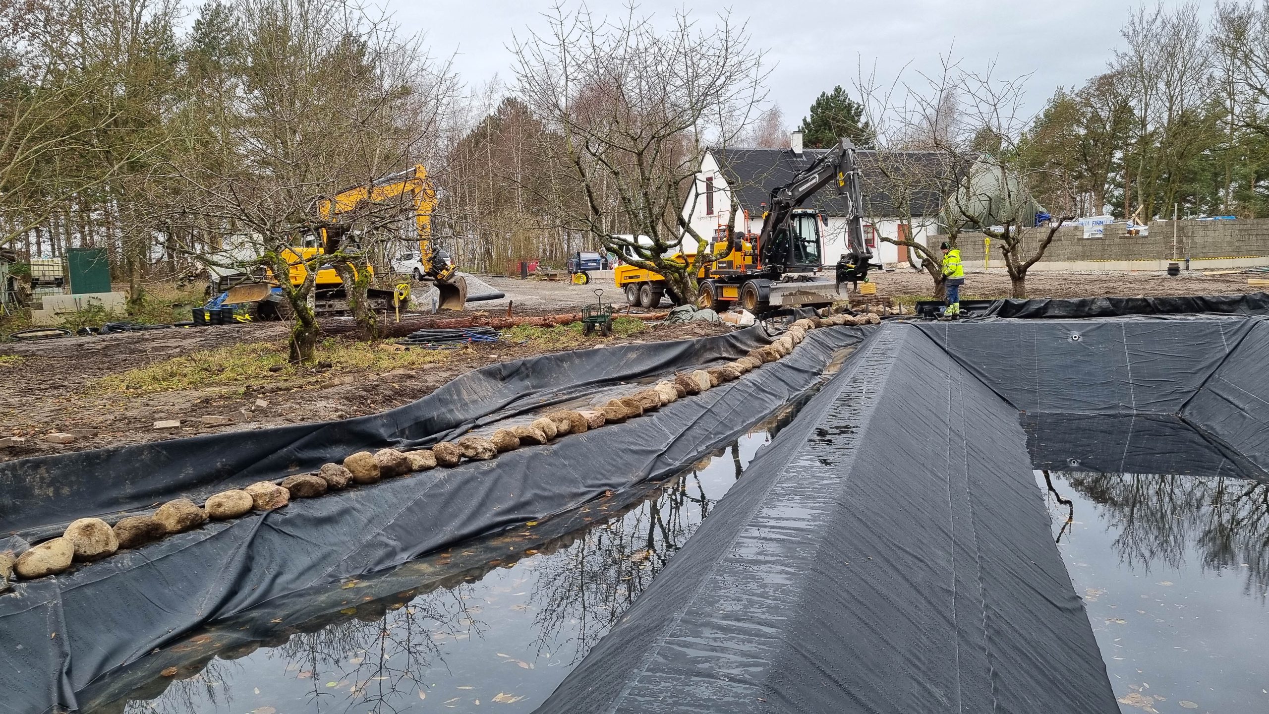 Vi utför alla typer av anläggningsarbeten – ombyggnationer av bostadsgårdar, dräneringsarbeten, dagvattenprojekt, infrastrukturanläggningar, trädgårdsanläggningar, VA-arbeten, markarbeten för grundläggningar etc. Vi utför även rivning, marksanering och flyttning av stora träd.